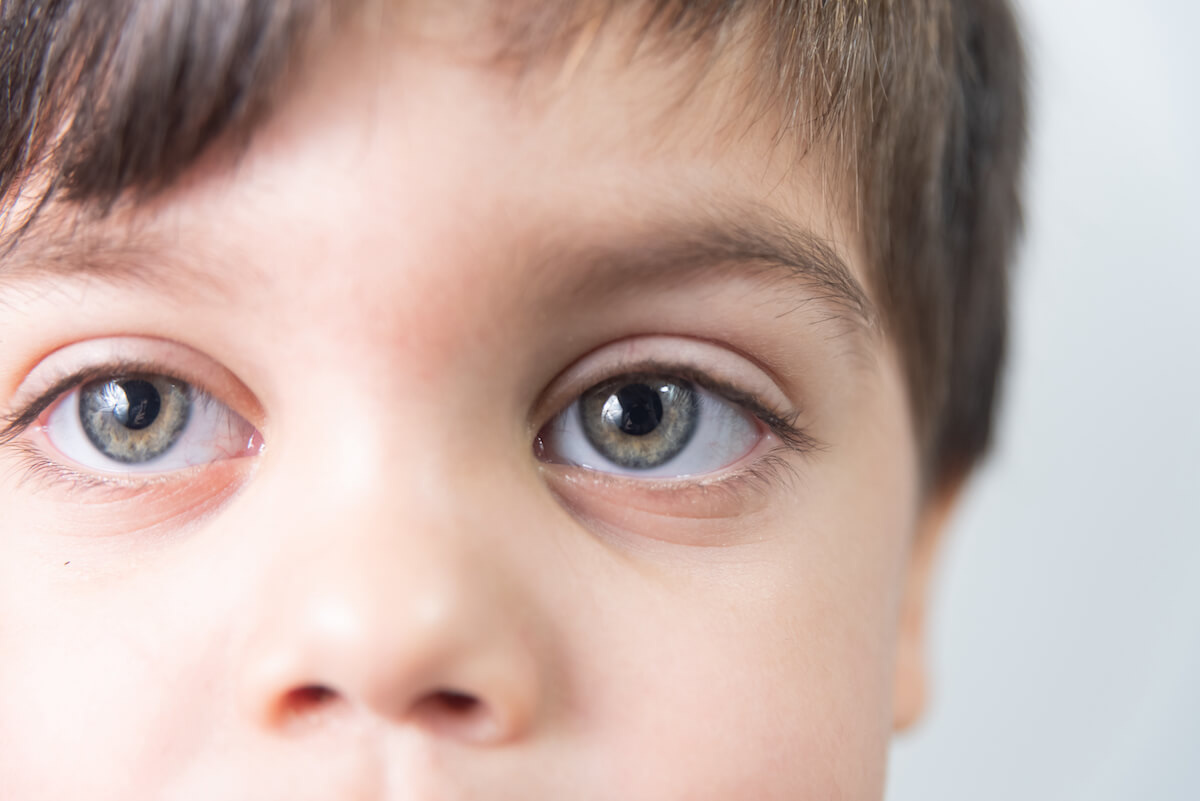 - Заметное отклонение глаза. Один глаз отклоняется относительно другого – к переносице (сходящееся косоглазие), к виску (расходящееся) либо вверх/вниз (вертикальное отклонение).