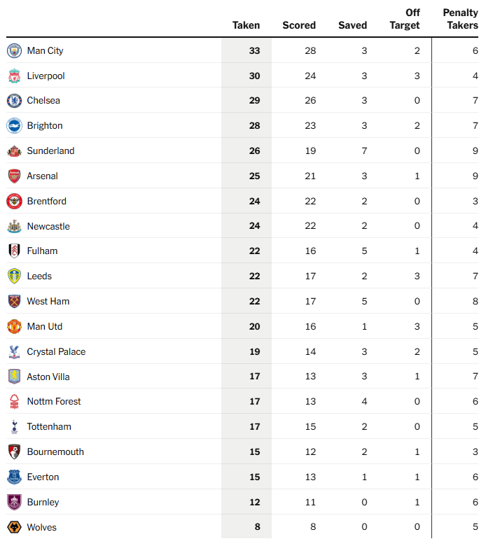 Статистика по пенальти в АПЛ с сезона-2021/22 . Большое исследование The Athletic