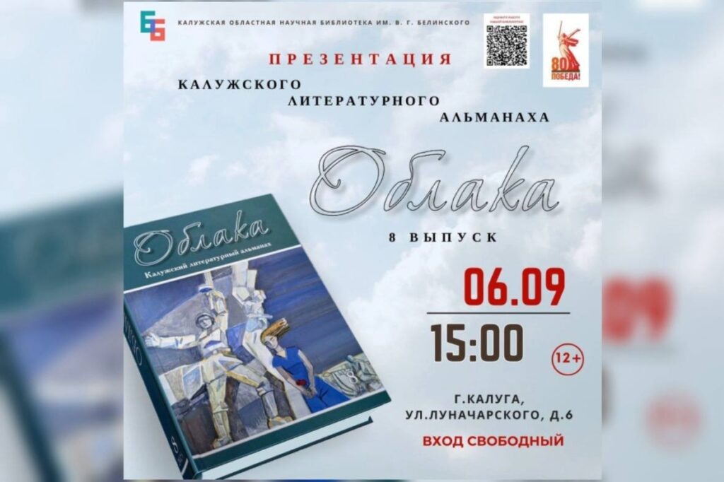6 сентября в 15:00 Калужская областная научная библиотека имени В. Г. Белинского приглашает всех ценителей литературы на важное культурное событие — презентацию восьмого выпуска литературного альманаха «Облака». Это издание стало не только площадкой для творческого самовыражения, но и символом единства калужских авторов, которые бережно сохраняют и развивают традиции родного слова.
