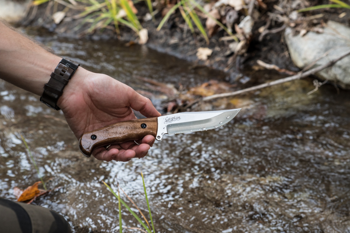 Легенда ножа началась с Ризона Боуи и случайной травмы во время охоты, но история дала ему по-настоящему славу после дуэли 19 сентября 1827 года, где его брат Джеймс уложил двух оппонентов, вооруженных шпагами, используя этот нож. Это событие распространило славу ножа Боуи, и все хотели иметь подобный нож. Российские производители не остались равнодушными к этому знаменитому ножу. В 2015 году компания Kizlyar Supreme из Санкт-Петербурга представила свою версию этого знаменитого клинка, названную Caspian. Этот нож объединил в себе традиции востока и практичность западного стиля. Накладки рукояти Caspian выполнены из корня ореха и граба с красивой структурой. Рукоять имеет характерный выступ в задней части, что позволяет легко выхватывать нож из ножен. С рукояти стороны клинка имеется упор для безопасности. Ножны выполнены из кожи и оснащены удобным свободным подвесом, что обеспечивает комфортное ношение. Запад внес свой вклад, предоставив ножу Caspian мощный широкий клинок с толстым ост