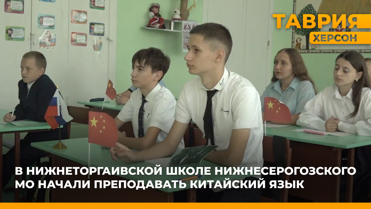 В Нижнеторгаивской школе запустили занятия по китайскому языку. Уроки ведет опытный педагог Сергей Горячев. Он приехал в Херсонскую область из Москвы год назад. Сергей — учитель обществоведческих наук, но уже много лет занимается китайским языком и некоторое время жил в Китае. Теперь он делится своими знаниями с учениками. «Ребята наши заинтересовались изучением китайского языка. Поэтому с этого года мы за счет внеурочной деятельности внесли китайский разговорный язык. Занятия у нас будут проходить час в неделю. Ну, уже вот 45 детей к нам записались», — рассказала директор школы Светлана Петрова. Преподаватель начал готовиться к урокам еще год назад, разрабатывая учебный план. На первых занятиях школьники познакомятся с историей и культурой Китая, а также изучат иероглифы. Для свободного общения и письма на китайском языке им нужно выучить минимум полторы тысячи иероглифов, хотя всего их более пятидесяти тысяч. В будущем администрация школы планирует проводить уроки китайского и для уч