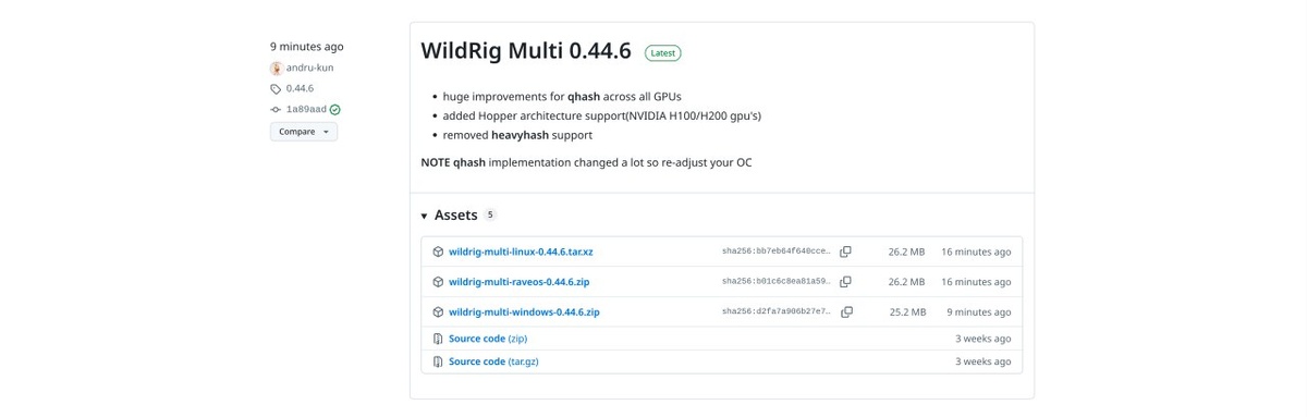 WildRig Multi 0.44.6 — Огромные улучшения для qhash на всех графических процессорах добавлена поддержка архитектуры Hopper (графические процессоры NVIDIA H100/H200) — удалена поддержка heavyhash ПРИМЕЧАНИЕ: Реализация qhash сильно изменилась, поэтому перенастройте свой разгон. Скачать