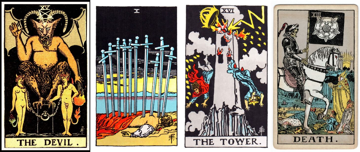 В мире Таро есть карты, вид которых заставляет сердце биться чуть чаще даже у опытных практиков. Башня, несущая разрушение; Смерть, символизирующая конец; Дьявол, указывающий на оковы; 9 Мечей, олицетворяющая ночные тревоги и муки совести.