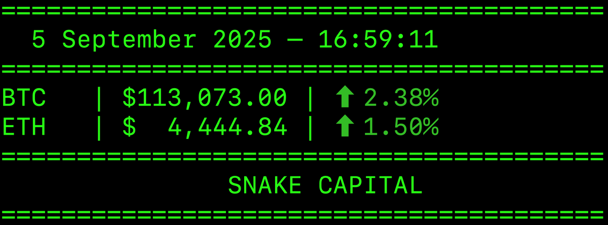 На момент публикации: Вывод: 5 сентября рынок криптовалют сохраняет позитивный тренд, BTC ведущий показывает устойчивость, а ETH восстанавливается после волатильности. Следует внимательно следить за итогами сегодняшнего истечения опционов, данными по занятости и ковариативностью рынка с другими активами. Аналитика подготовлена специалистами Snake Capital. Не является инвестиционной рекомендацией. Больше аналитики в Телеграм-канале компании Snake Capital Management: Задавайте свои вопросы и делитесь мнениями ниже в комментариях, будем рады ответить 24/7.
