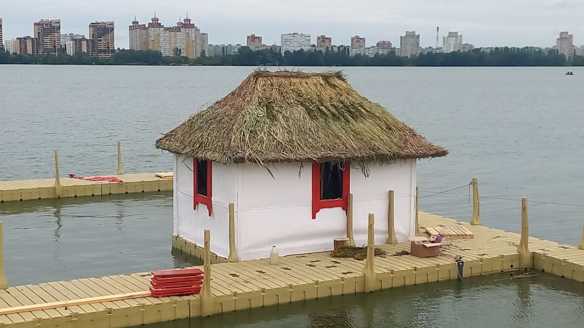 Избушка поплыла. На Петровской набережной продолжается подготовка к фестивалю "Город-Сад"