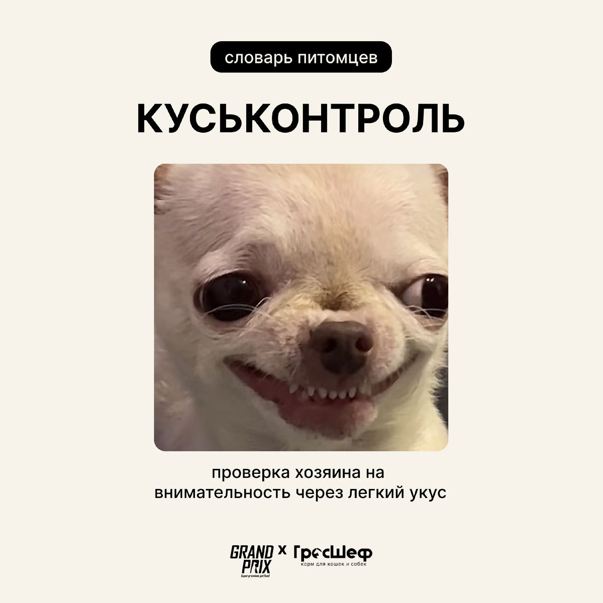 Переходите в наш ТГ-канал, читайте рубрику и придумывайте свои термины в комментариях. Кстати, среди авторов идей мы разыгрываем 🎁 пачку корма и фирменный шоппер GRAND PRIX