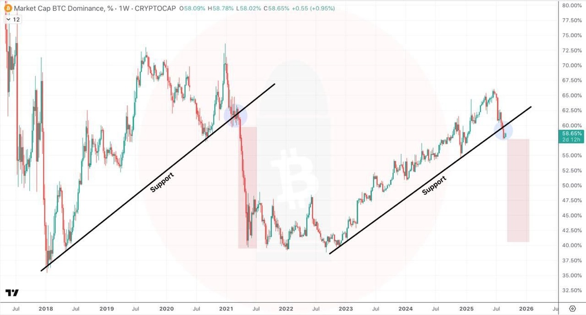 Посмотрите на этот график доминации Биткоина, вы на самом деле думайте, что альткоины не вырастут