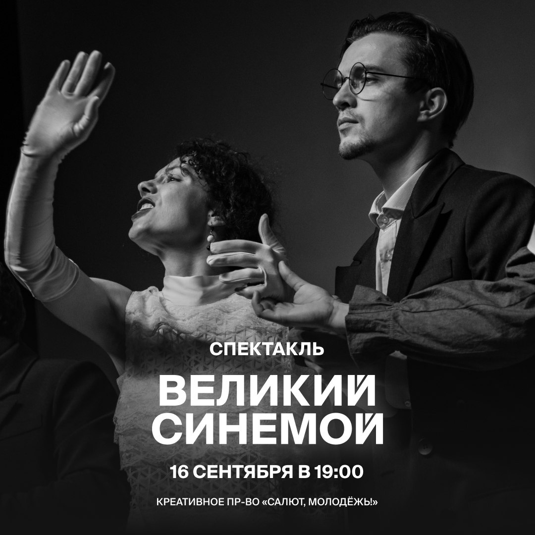 «Салют, молодёжь!» на один вечер превратится в театр! Спектакль «Великий Синемой» о молодых людях, живших в Вологде в начале 20 века, о хрупкости чувств и человеческих отношений разворачиваются на фоне истории большого кино и великой эпохи. ➡️ Почему стоит посмотреть? 💙Ни в одном театре мира вы больше не увидите этот спектакль. Пьеса «Великий Синемой» была написана специально для этого проекта. 💙Спектакль вошел в топ-300 конкурса «Золотой фонд театральных постановок России». 💙Образы, вдохновленные историческими личностями, некоторые их которых жили в Вологде в начале XX века. 💙Уникальный актерский состав: на одной сцене талантливые молодые актеры из трех театров Вологды! Где вы еще увидите их вместе сцене? 💙Синергия кино и театра: спектакль рассказывает о первых годах развития кинематографа. История начинается в вологодском электротеатре «Рекорд» в 1914-ом, а атмосфера возвращает в прошлое, когда кино было совсем другим. Режиссер: Ася Литвинова (г. Москва) Драматург: Марга