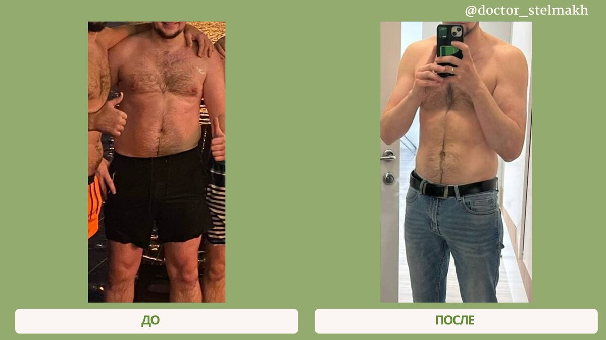 Пробовал разные диеты, считал калории, подключал физическую активность — а результата всё равно не было.⠀ На консультациях мы детально разобрали образ жизни, питание, привычки. Составили индивидуальный план, а именно, скорректировали питание, активность, подобрали витамины и аминокислоты для поддержки обмена веществ. 🤍 Итог за время сопровождения — снижение веса с 96 до 73 кг. И самое важное — не только минус 23 кг, но и новое качество жизни, а это больше энергии, лёгкость в теле, уверенность в себе. Если у вас похожий запрос – вы уже знаете куда и кому писать тг @M_a_r_i_aVS 🙂💚 #стельмах_кейсы
