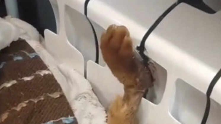 В Новосибирске спасли кота, лапа которого застряла в батарее отопления