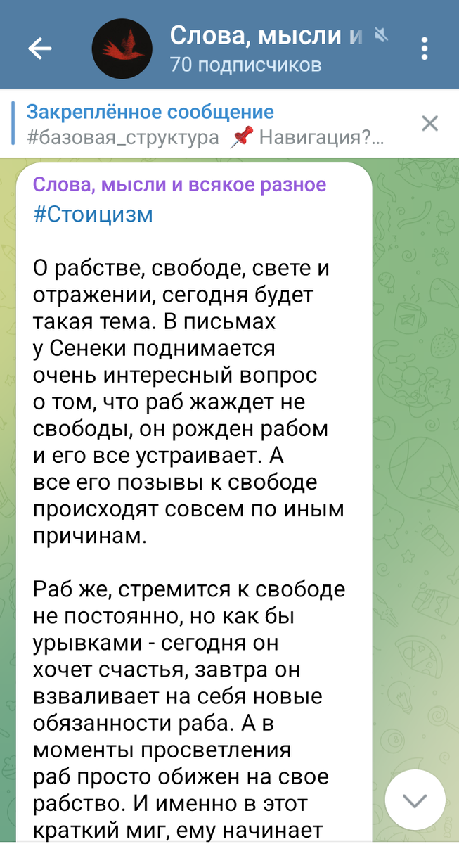 Здравствуйте, уважаемые друзья. Тема у нас сегодня очень любопытная, как вы видите из заголовка. Хотим вас показать еще один текст нашего ученика о стоицизме. Все его предыдущие тексты вы можете прочитать здесь. "О рабстве, свободе, свете и отражении, сегодня будет такая тема. В письмах у Сенеки поднимается очень интересный вопрос о том, что раб жаждет не свободы. Он рожден рабом, и его все устраивает. А все его позывы к свободе происходят совсем по иным причинам. Раб же стремится к свободе не постоянно, но как бы урывками: сегодня он хочет счастья, завтра он взваливает на себя новые обязанности раба. А в моменты просветления раб просто обижен на свое рабство. И именно в этот краткий миг, ему начинает казаться, что он хочет быть свободным. Но обида проходит, чувства затухают, и раб вновь вполне доволен своей участью. Ровно до того момента, когда на его пути вновь встречается препятствие, напоминание о его рабстве – штраф за опоздание на работу, повышение лояльного коллеги, необходи