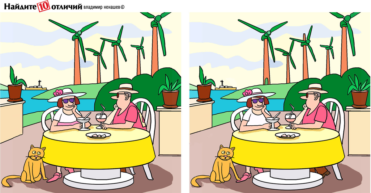 Друзья, сегодня у нас про пальмы и море. Правда, пальмы, как вы видите, современные. Найдём 10 отличий!