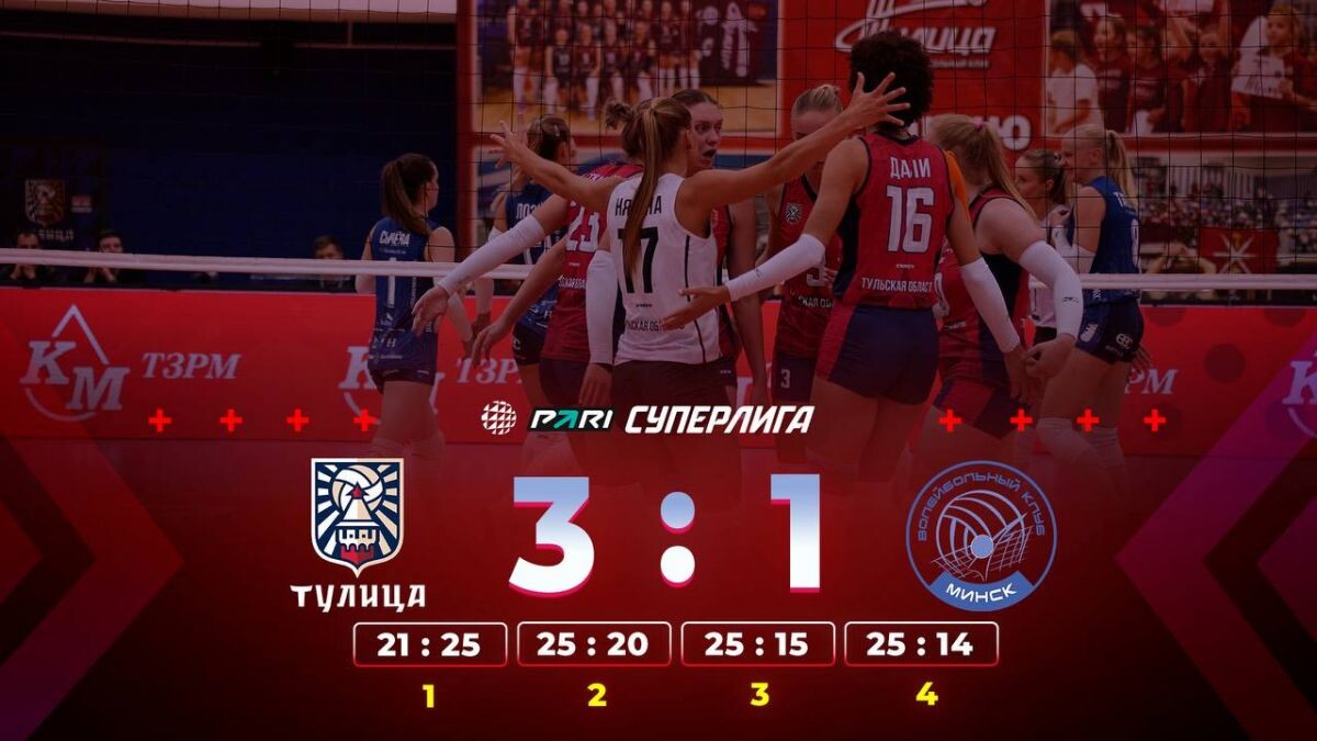 Во второй игре хозяйки площадки - волейболистки «Тулицы» - встречались с «Минчанкой» из Беларуси. Первую партию гости из Минска провели собранно и в концовке выиграли 25:21. Однако следующие три партии «Тулица» провела на хорошем уровне и добилась уверенной победы: 25:20, 25:15, 25:14. Итоговый счёт 3:1 в пользу «Тулицы».