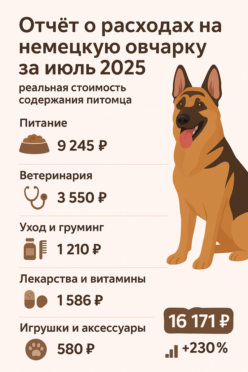 💰 Отчёт о расходах на немецкую овчарку за июль 2025: реальная стоимость содержания питомца