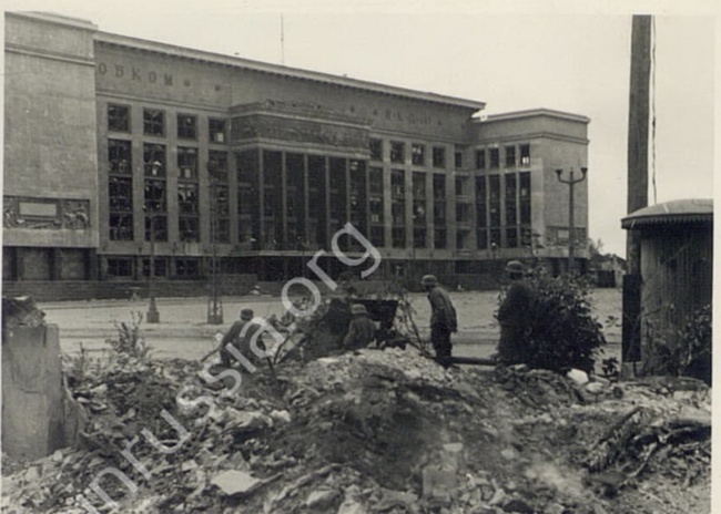 Здание Обкома, г. Воронеж, фото август - сентябрь 1942 года, впоследствии здание будет взорвано немецкими бандитами при отступлении. Фото 1.