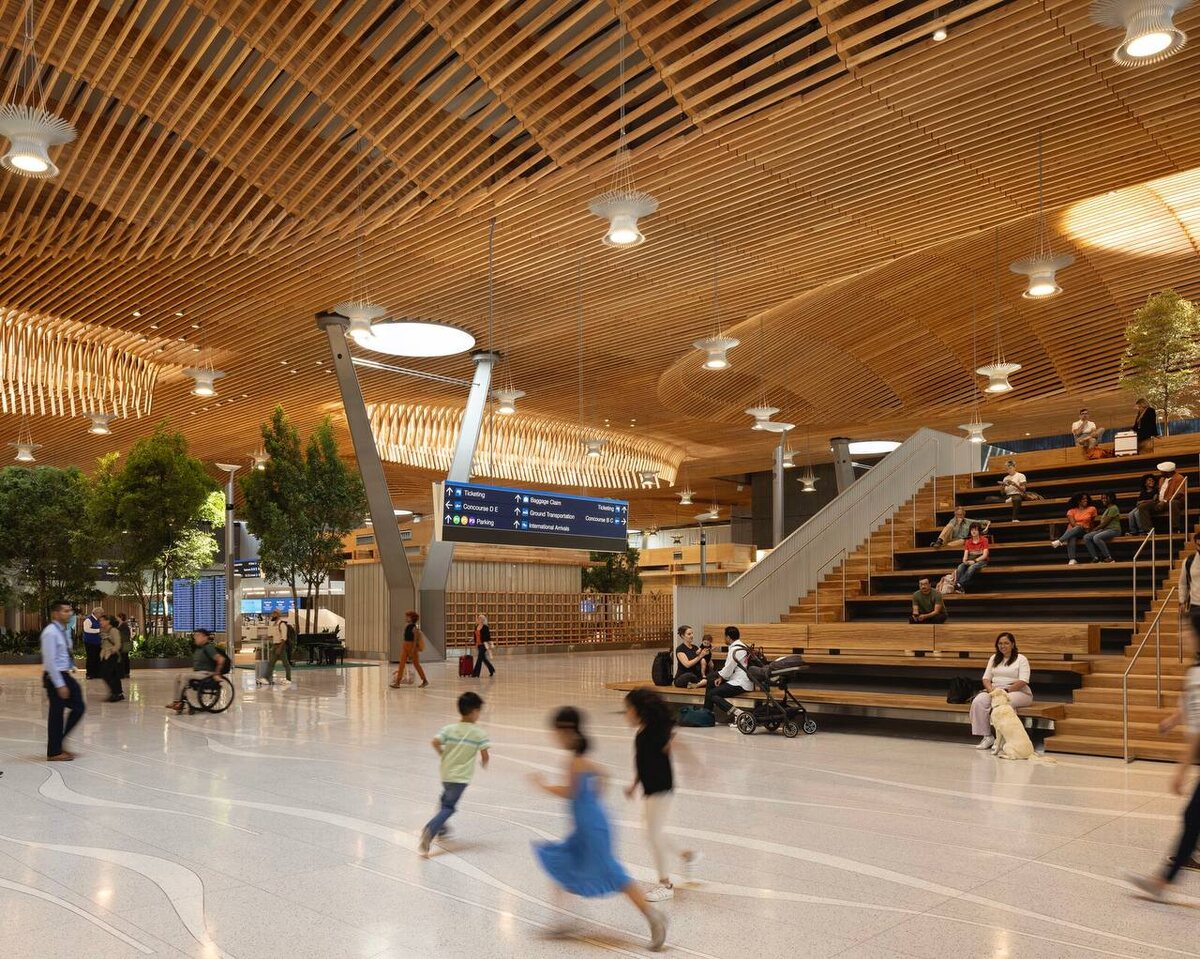 Крупнейший деревянный терминал Международный аэропорт Портленда представил терминал, который уже называют шедевром современной инженерии. Его особенность использование массива древесины: 9 800 куб. м, крыша площадью 36 000 кв. м, полученная из возобновляемых посадок всего в 480 км от объекта. Что делает проект уникальным: 🟧49 световых люков освещают 60% площади терминала. 🟧Внутри высажено более 5000 растений и обустроены каскадные сады. 🟧Повторное использование конструкций позволило сократить выбросы углерода на 70%. 🟧Крыша выдерживает землетрясения до 9 баллов. Архитекторы называют этот проект шагом в будущее, где дерево становится основой устойчивой архитектуры. #деревовархитектуре #QBIK