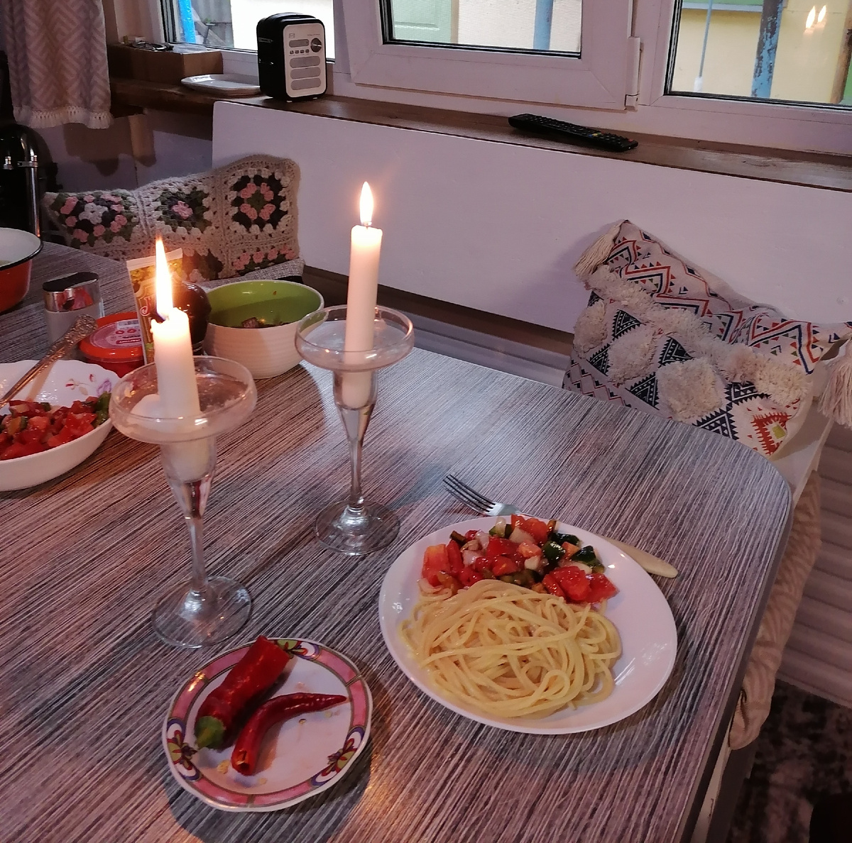 В сентябре для меня наступает сезон хюгге. Снова стало уютно кутаться дома в теплую одежду и зажигать свечи во время ужина. На этот сезон поставила себе целью научиться вязать следки для дома. Сейчас ношу те, что вяжет моя бабуля. Хочу и сама так научиться. Шарфов мне уже хватит, пора переключаться на что-то другое. *** Никак не налюбуюсь на свою полку в шкафу, в которой оставила необходимый минимум. Из одежды оставила только кардиган, который нельзя вешать. Остальную одежду вешаю в шкаф, в том числе костюмы для дома. Пижамы, белье и носки храню в ящике комода, используя коробки разных размеров и вертикальное хранение по методу Мари Кондо. Кроме этого, здесь у меня коробка с расческой "Дарсонваль", шкатулка с украшениями, косметичка (пустая), и органайзер с косметикой. Все на виду и это облегчает утренние сборы. Каждый раз, открывая шкаф теперь испытываю удовлетворение и как будто внутреннее спокойствие. *** Достала блокнот, который покупала для нового буллета еще в начале лета. Э