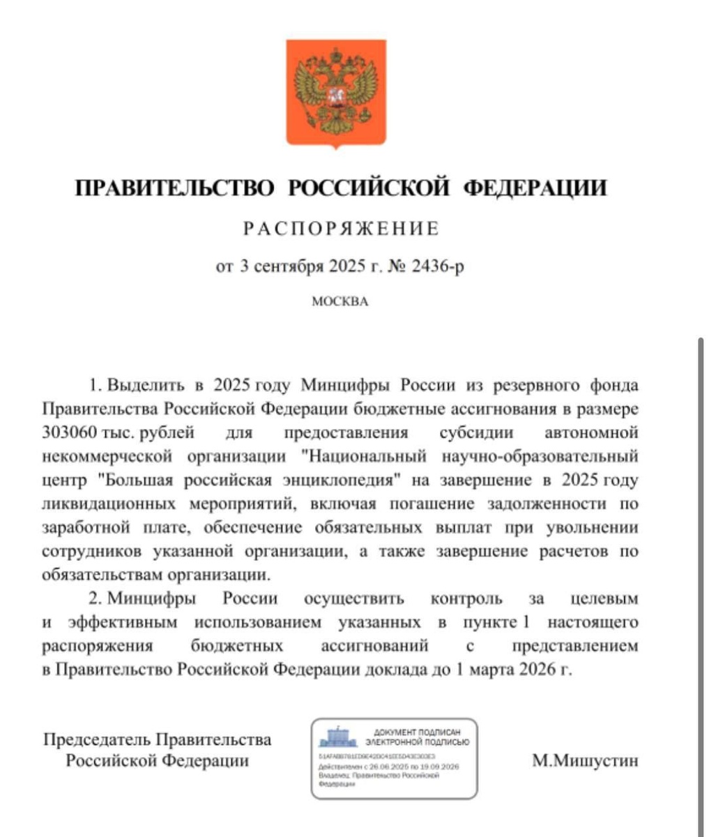 «Российскую Википедию» закрывают: правительство выделило 303 миллиона рублей на ликвидацию АНО «Большая российская энциклопедия», создателя