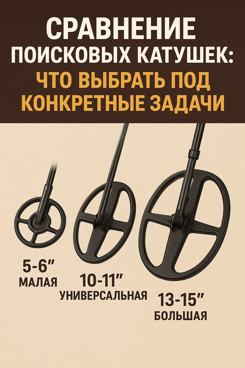 Выбор поисковой катушки — это искусство компромиссов. Нельзя иметь одновременно максимальную глубину, точность и лёгкость. Каждый размер и тип катушки заточен под определённые условия: где-то важнее глубина, где-то — чувствительность к мелочам, а где-то — способность работать в замусоренном месте.
