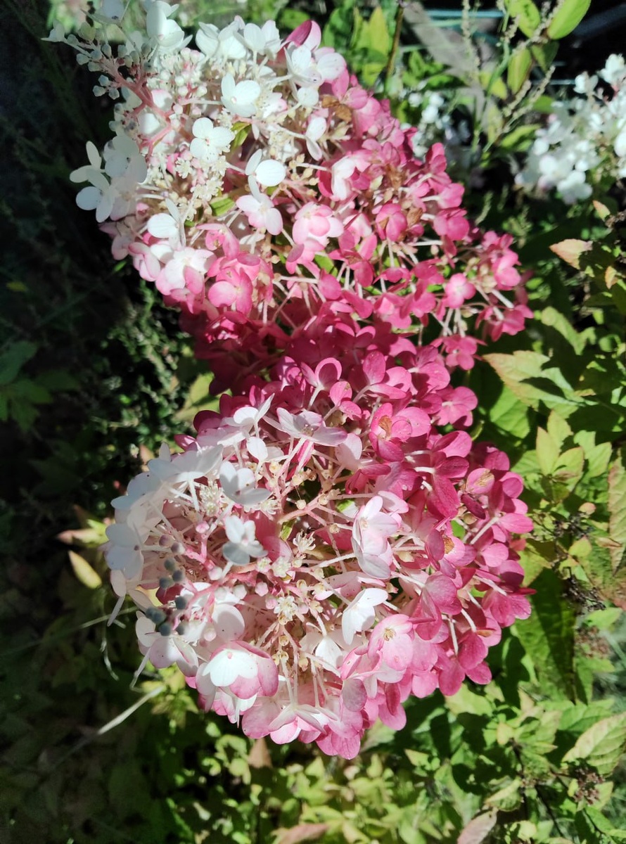 Гортензия метельчатая СТРОУБЕРРИ БЛАССОМ (цветение — конец августа 2025 года) Вид на 25.08.2025 года Готовится к пересадке... В этот год вряд ли получится с нее сделать черенков, так как габитус куста еще не очень позволяет. А вот на следующий возможно... Одна из самых удачных гортензий... Дата фотосъемки: 25.08.2025 года 15:15:53 [№1] МСК