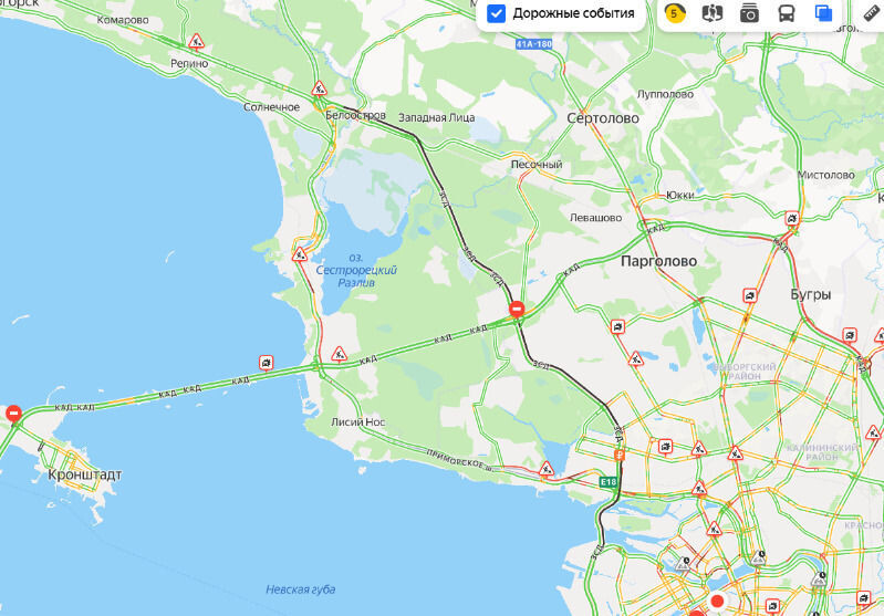 Движение на ЗСД в сторону Белоострова перекрыли вечером в пятницу