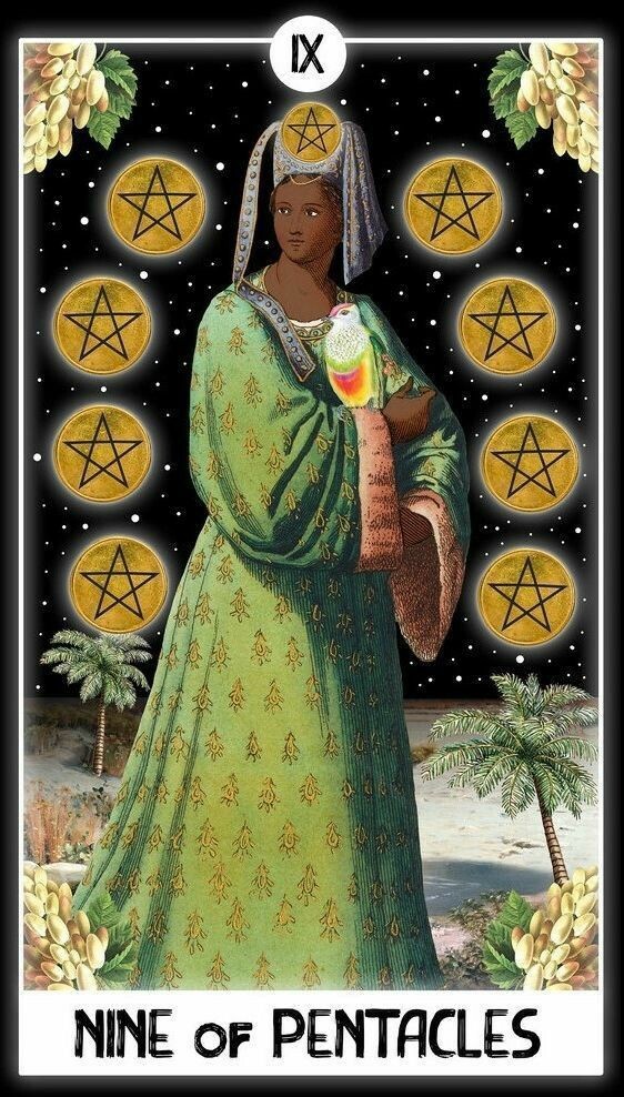 Его благосклонность — условна». Особенно тревожная, если рядом с Дьяволом или Пятеркой Пентаклей — признак эмоциональной зависимости от ресурсов. Девятка Пентаклей — комфорт, роскошь, изобилие Карта материального благополучия, уюта, з