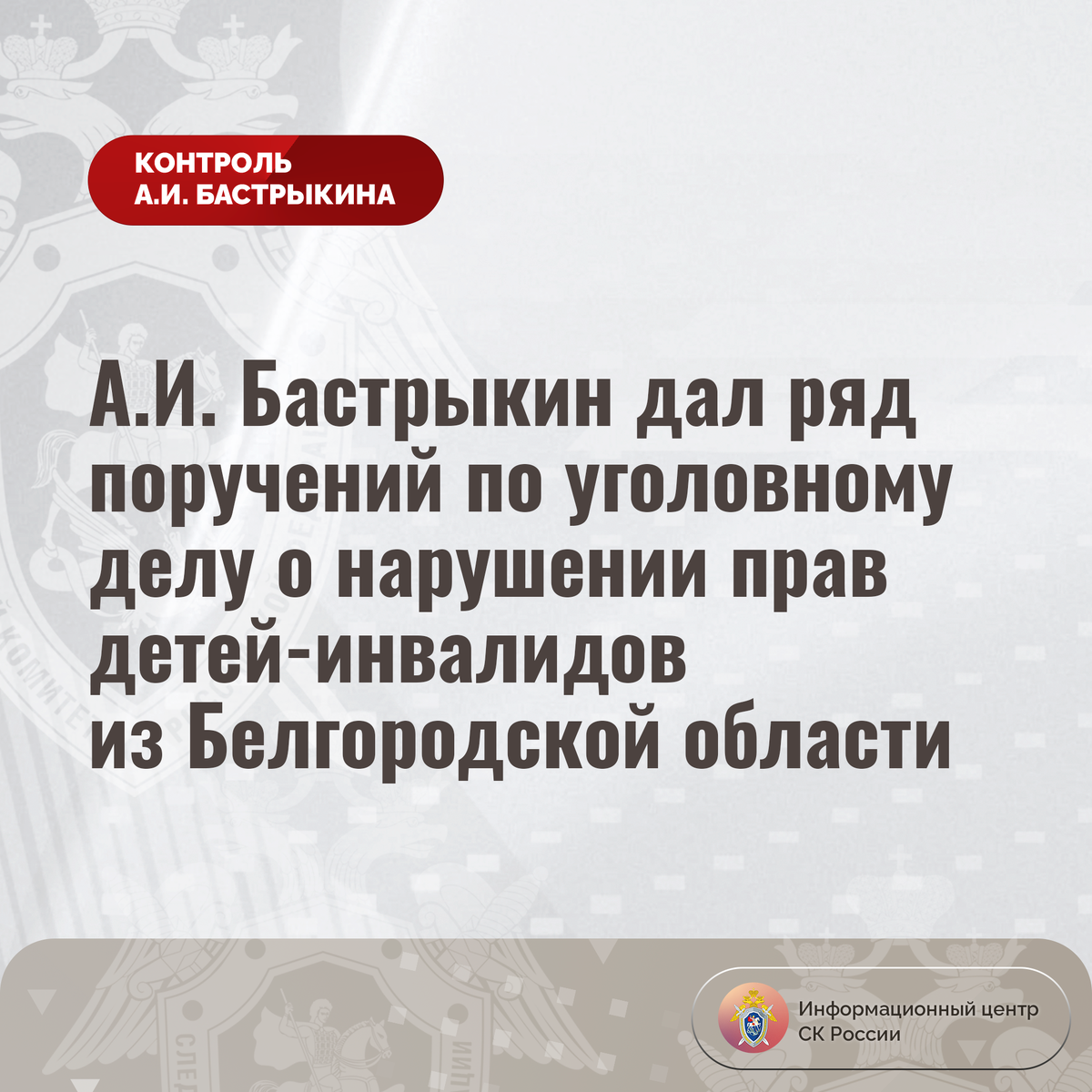 А.И. Бастрыкин дал ряд поручений по уголовному делу о нарушении прав детей-инвалидов из Белгородской области