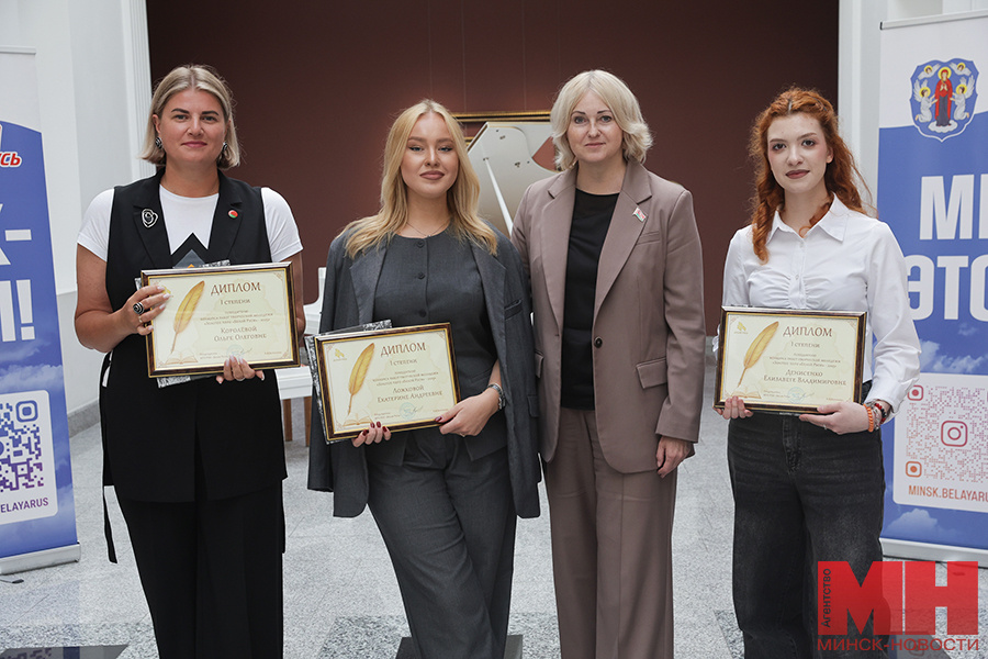 Торжественная церемония награждения победителей городского этапа конкурса «Золотое перо «Белой Руси» — 2025» состоялась в Национальном художественном музее 5 сентября, передает корреспондент агентства «Минск-Новости». Республиканское общественное объединение «Белая Русь» вот уже 12 лет ежегодно проводит этот конкурс, чтобы раскрыть новые таланты. «Какая безмерная тяжесть на женские плечи легла…» — такой была общая тема конкурса работ молодых журналистов, посвященного 80-летию Победы в Великой Отечественной войне. На суд жюри Минской городской организации РОО «Белая Русь» поступило 38 работ в четырех номинациях: «Учащийся», «Студент», «Любитель» и «Профессионал». Оценивалась оригинальность подачи материала, художественный уровень текстов, соответствие жанровым критериям. На республиканский этап отправили работы, занявшие 1-е, 2-е и 3-е места в каждой из номинаций. Председатель Минской городской организации РОО «Белая Русь», депутат Минского городского Совета депутатов Наталья Воронова о