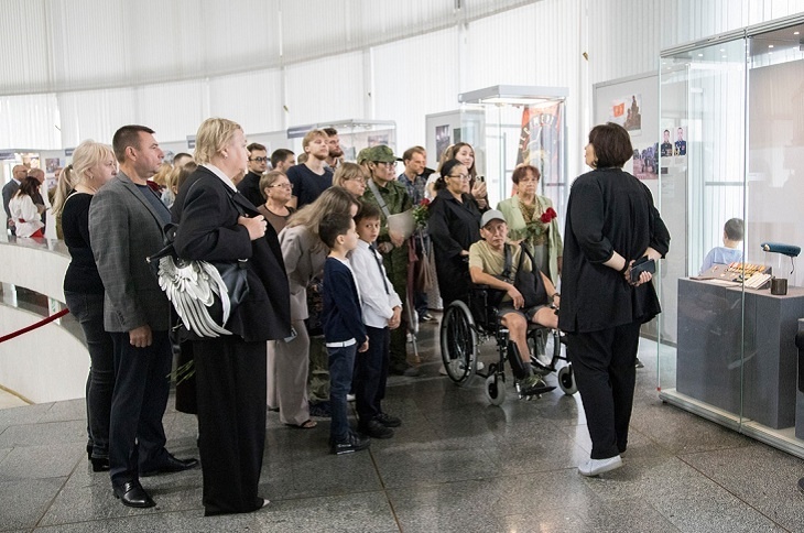Сегодня, 5 сентября, в волгоградском музее-панораме «Сталинградская битва» состоялось торжественное открытие обновленной выставки «Время героев», посвященной событиям и героям специальной военной операции и приуроченной к Году Защитника Отечества. В мероприятии приняли участие представители ветеранского сообщества, участники СВО, члены их семей, студенты и школьники города. На открытии выставки пришли участник СВО, депутат Волгоградской областной думы, кавалер ордена Мужества Александр Нелепин, вдовы Героев России Евгения Орлова Анна Орлова и Максима Аплеталина Мария Аплеталина. Анна Орлова рассказала о своем муже и передала в музей реликвию – шеврон с его портретом и надписью «Ни шагу назад!», изготовленный его боевыми товарищами. Этим шевроном теперь отмечают наиболее отличившихся бойцов. Родные героев также поделились с музеем личными вещами и фотографиями своих погибших на СВО близких. Выставка будет работать до 20 января 2026 года. Фото музея-панорамы «Сталинградская битва»