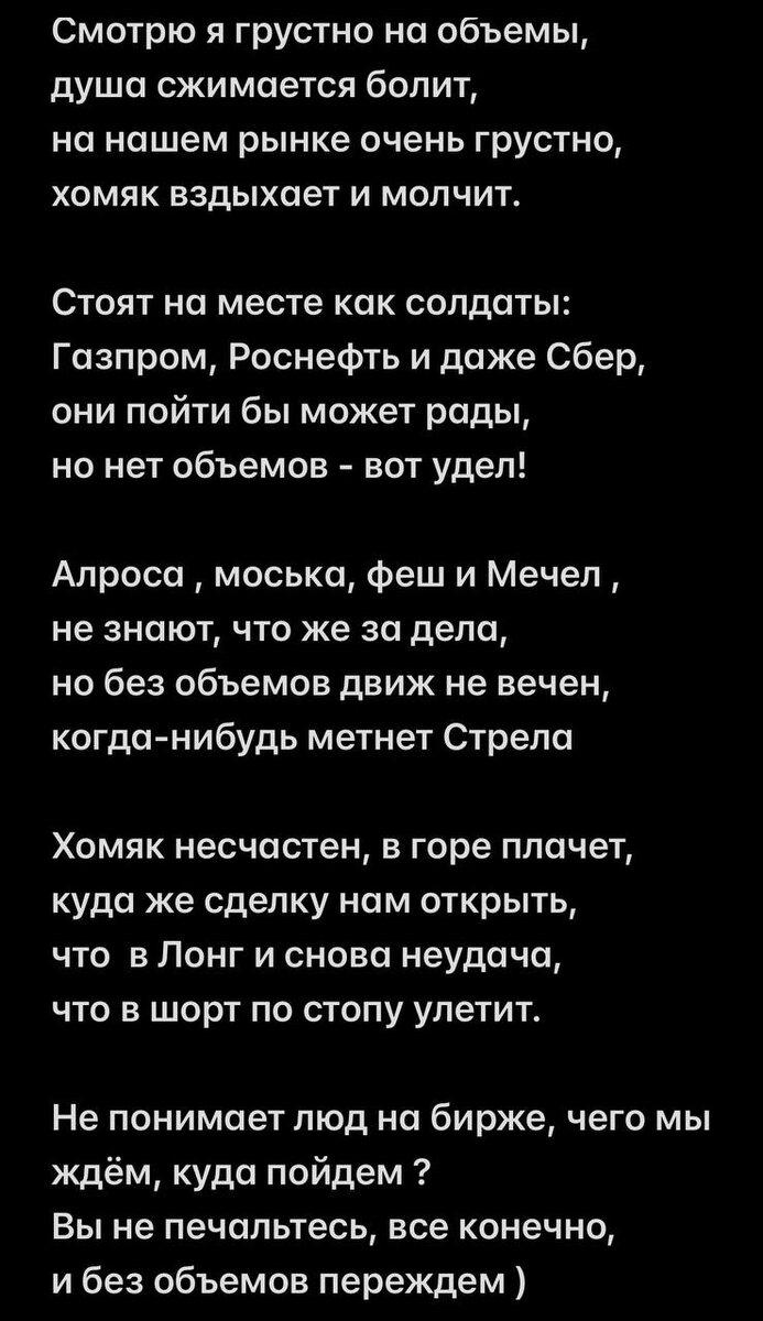 Друзья! ❔ Нравится ли вам наше поэтическое юмористическое отступление от технических разборов? 🫶Кстати, в чате мы друг с другом делимся не только мысли по рынку, но и стихами на тему инвестиций. Наш чат всегда для вас открыт, подключайтесь с нами общаться https://t.me/taiti_boltalka #стихтаити