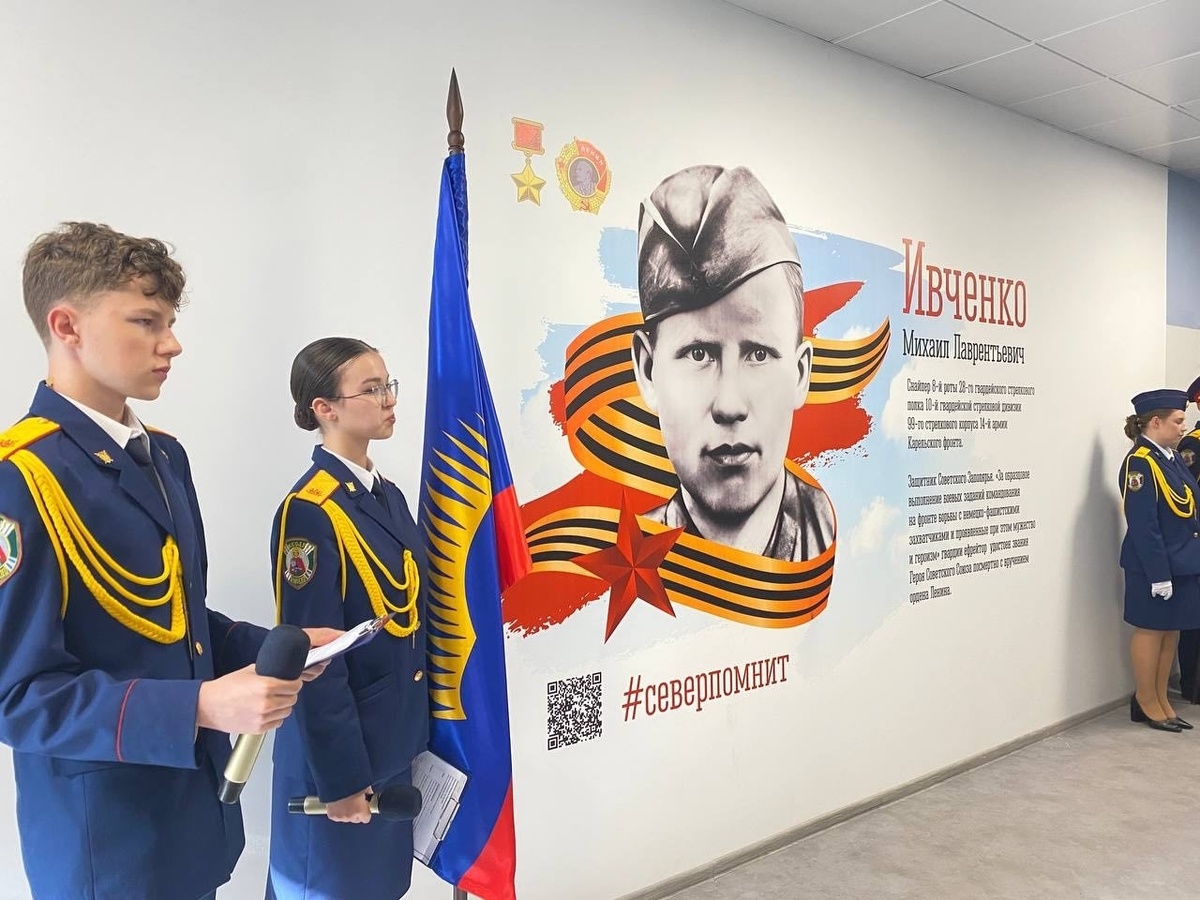 поколений и примером жизни, отданной служению Родине. В Мурманске в лицее №2 открыли мурал Михаилу Лаврентьевичу Ивченко, участнику Великой Отечественной войны, Герою Советского Союза. В гимназии №3 - Александру Витальевичу Подстаницкому, участнику войны, мурманскому писателю и журналисту. В гимназии №5 - Николаю Яковлевичу Туркову, участнику Великой Отечественной войны, Герою Советского Союза. В школе №23 - Павлу Акимовичу Пономареву, первому капитану атомного ледокола «Ленин». В Оленегорске в школе №4 увековечена память Сергея Владимировича Бубнова, героя специальной военной операции. В школе №13 мурал посвящен Андрею Евгеньевичу Мосину, выпускнику этой же школы, участнику специальной военной операции, погибшем