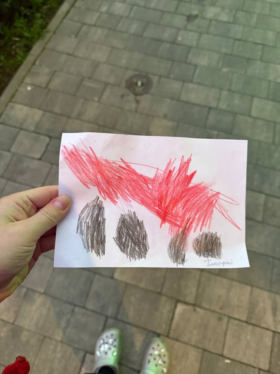 Вообще, я в восторге, потому что он наконец начал что то рисовать сам. Не раскраски, а вот прям из головы что то придумывает)