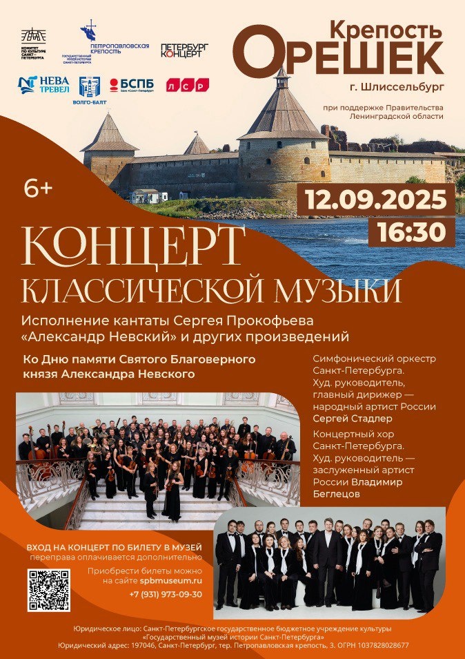 В этом году впервые в этот день в крепости Орешек состоится масштабный концерт классической музыки под открытым небом в исполнении Симфонического оркестра Санкт-Петербурга (под руководством н.а. России Сергея Стадлера) и Концертного хора Санкт-Петербурга (под руководством з.а. России Владимира Беглецова).