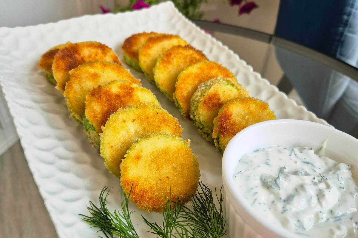 Друзья, всем привет. Сегодня предлагаю вашему вниманию кабачки в сухарях. В сезон кабачков, что только из них не готовят, интернет прямо-таки переполнен рецептами. Но вот такой рецепт мне лично не встречался. А я такие кабачки готовлю круглый год, т.к. для этого блюда подходят только молодые крепкие плоды без семечек. Благо, сейчас такие кабачки в магазине можно купить не только летом, но и зимой. Готовить их проще простого, а подать такие кабачки не стыдно даже на праздничный стол - оригинально и вкусно. Кабачки Яйцо Мука Панировачные сухари Соль Масло подсолнечное для жарки Кабачки нарезать кружочками толщиной 1 см. Приготовить все для панировки: яйцо взбить вилкой, отдельно насыпать муку и панировочные сухари. Кабачки посолить, а затем каждый кружок кабачка сначала обвалять в муке. Затем в яйце. И, наконец, в панировочных сухарях. Отправить на горячую сковороду в небольшое количество подсолнечного масла. Обжарить с двух сторон до золотистой корочки. Готовые кабачки выл