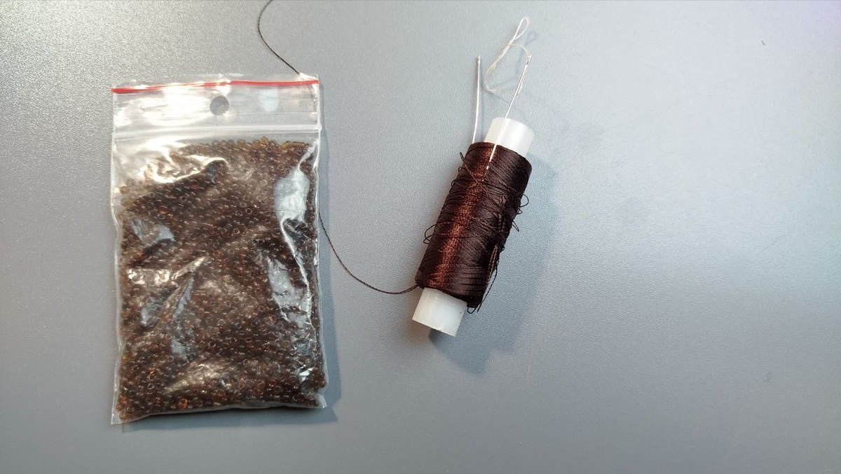 Сегодня продолжу тему бисероплетения. В этом мастер-классе покажу процесс плетения сетки из бисера. Сетка - это один из самых простых видов плетения из бисера. С ней легко справляются даже новички и, пожалуй, именно с нее начинается знакомство с бисероплетением у многих рукодельниц. Если использовать цветовой рисунок в плетении, то сетка сама по себе может стать изделием. Но я хочу в дальнейшем ее расшить, но пока все по порядку. Итак, для работы я возьму синтетическую нить, бисер №10 и тонкую иголку. Бисер в этот раз у меня китайский, он не очень калиброванный, попадаются кривые бисерины. Но для основы моего браслета он пойдет, поскольку в дальнейшем я буду его расшивать. Буду стараться во время плетения выбирать более-менее одинаковые бисеринки. Приступим. Вставляю нить в иголку. Нить сразу беру длинную, порядка 150 см. Нанизываю 16 бисерин. Справа у меня иголка, слева оставляю нить примерно 30 см, она понадобится нам для формирования замка. Отсчитываю от начала 6 бисерин и вхожу