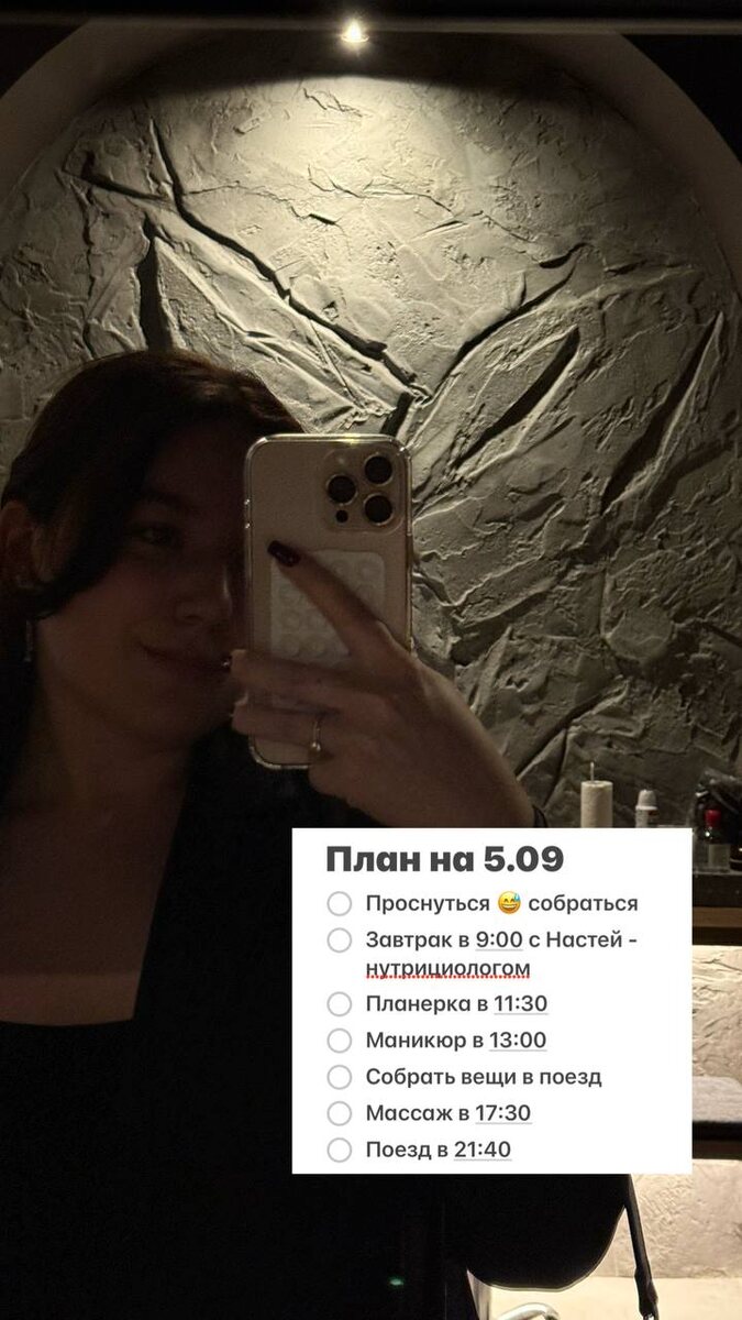 Сегодня был очень тяжелый насыщенный день… Просто посмотрите на план) а к этому еще +100 разных других дел ➖попрощаться натискать кота перед отъездом ➖время на дорогу ➖время на переписки/сообщения (с кем-то договориться, куда-то записаться, что-то сделать, заказать, купить) ➖собрать сумку в дорогу после того, как я покрасилась, у меня теперь специальный шампунь и всякие уходовые штуки, которые тоже нужно взять с собой И самое важное - никуда не опоздать и ничего не забыть 😁 А с этим я не очень хорошо справляюсь) 📌Дополнительно ко всему этому я еще вела сторис в моменте - прям показывала весь свой день с самого утра Решила устроить такой челлендж⤵️ 1️⃣Для привыкания к сторис (чтобы это вошло в жизнь и было легче снимать) 2️⃣Для того, чтобы убрать немного свой перфекционизм (он сегодня был максимально недоволен как я сделала сторис без плана 🥲) Это офигенная практика! Всем рекомендую попробовать такой формат, кто ведет блог А я уже еду в поезде и пишу вам пост) ниже хочу еще
