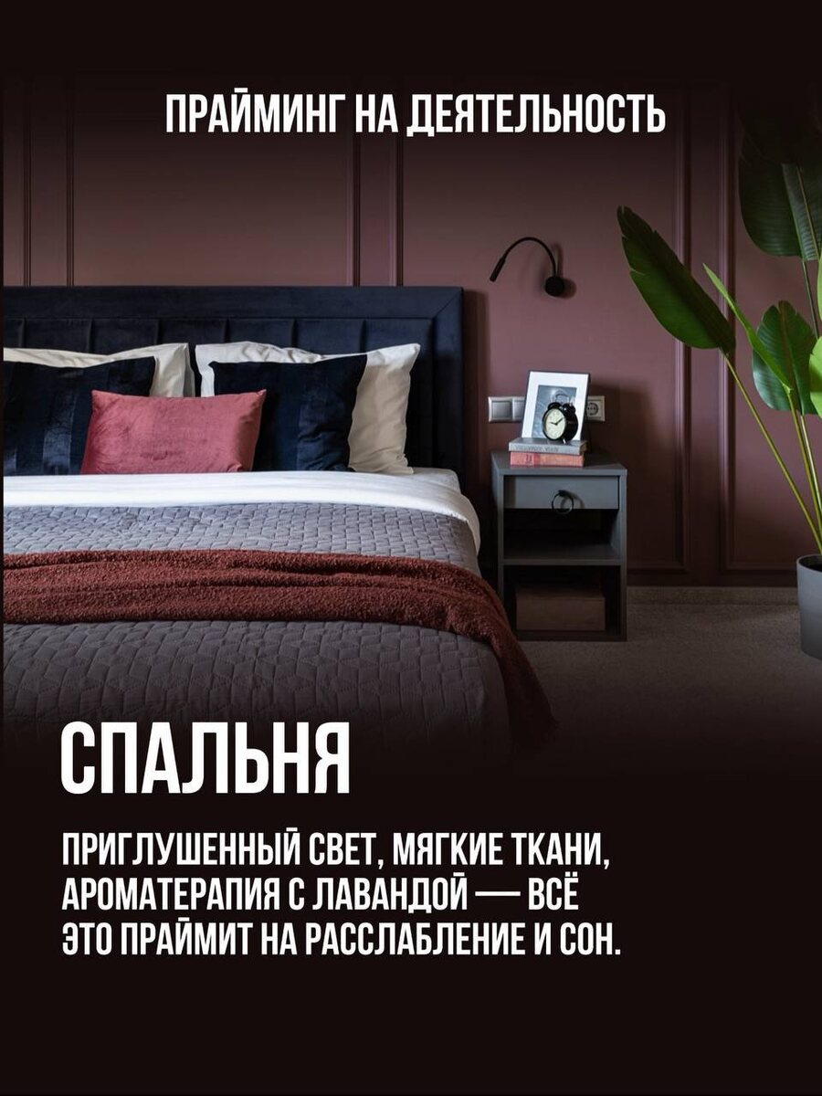 Увидела тут недавно информацию про эффект прайминга из лекции Даниэля Канемана и хочу поделиться мыслью: Прайминг это идея о том, что скрытые сигналы (слова, окружение, изображения) могут влиять на ваши мысли, действия и эмоции Я подумала, ведь это совершенно точно применимо и к дизайну интерьера!! 👉Это означает, что среда-интерьер, которые мы создаем, "настраивает" людей на определенное состояние, настроение или действие ‼️Прайминг в дизайне интерьера — это осознанный подбор деталей (цвета, света, текстур, запахов, предметов), которые неосознанно программируют ваше настроение и поведение, помогая комнате выполнять свою главную функцию: настраивать на работу, отдых или общение. ——————————————————⠀ Запись на консультацию @MariaVRozhkova