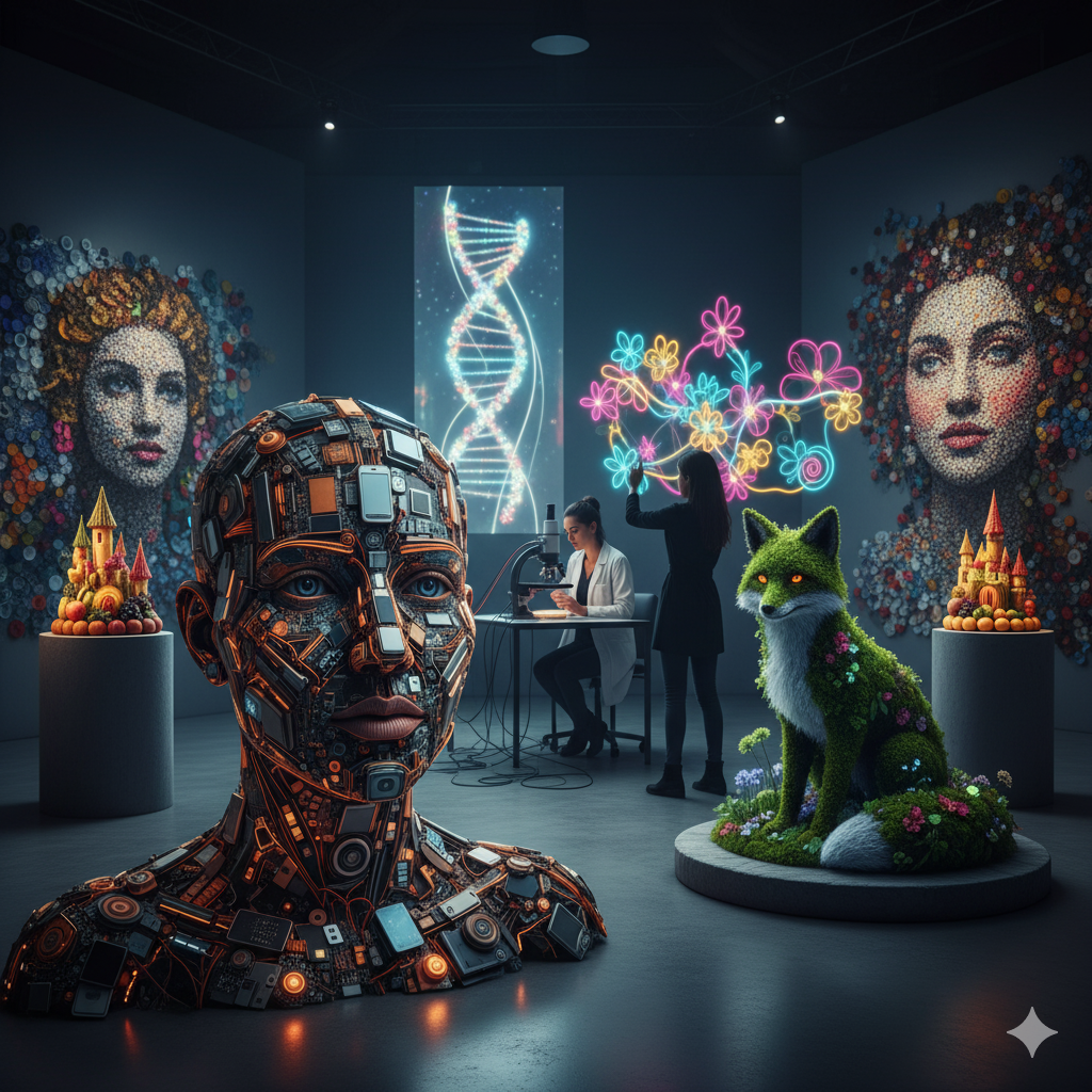 Искусство — это не только картины в галереях и скульптуры на площадях. Это бесконечное поле для экспериментов, где художники постоянно ищут новые формы и материалы, чтобы выразить свои идеи. Забудьте о привычных красках и глине — мы отправляемся в увлекательное путешествие по миру самого необычного искусства, где в ход идут мусор, свет, звук и даже живые организмы! Приготовьтесь удивляться! Что для одних мусор, то для других — материал для творчества. Художники, работающие с отходами, не только создают поразительные произведения, но и привлекают внимание к проблемам экологии. Портреты из мусора: Британский художник Зак Фриман использует выброшенные предметы — от пластиковых бутылок до старых игрушек — для создания детализированных портретов знаменитостей и обычных людей. Его работы заставляют задуматься о количестве отходов, которые мы производим. Скульптуры из электроники: Старые компьютеры, телефоны, провода и микросхемы становятся основой для футуристических скульптур. Это не тольк