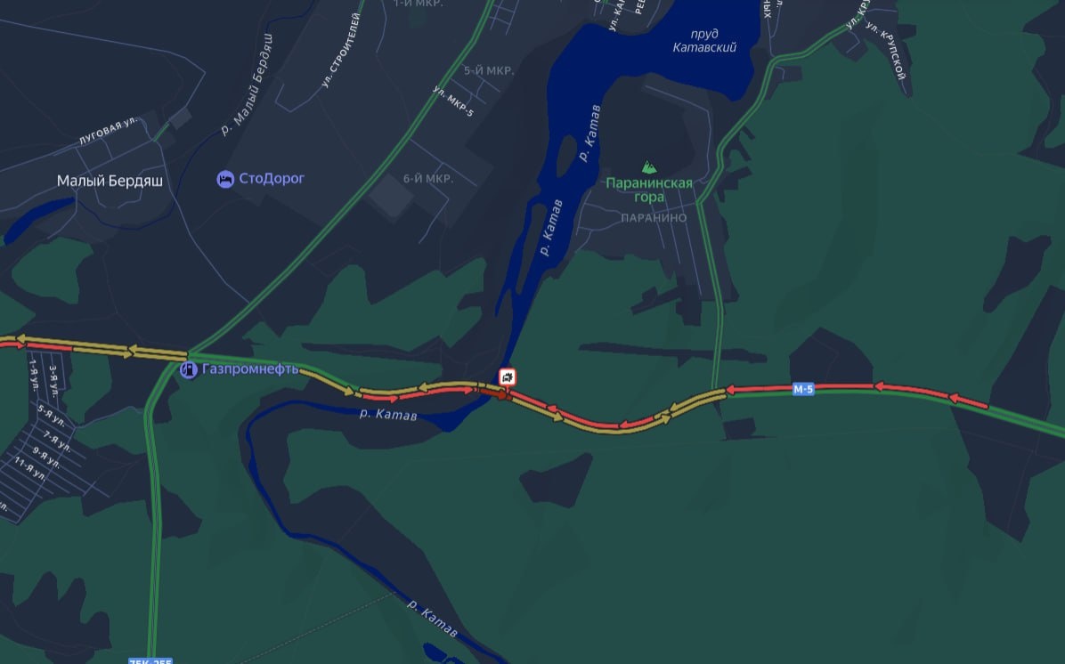 Грузовики перегородили трассу, организовано реверсивное движение.