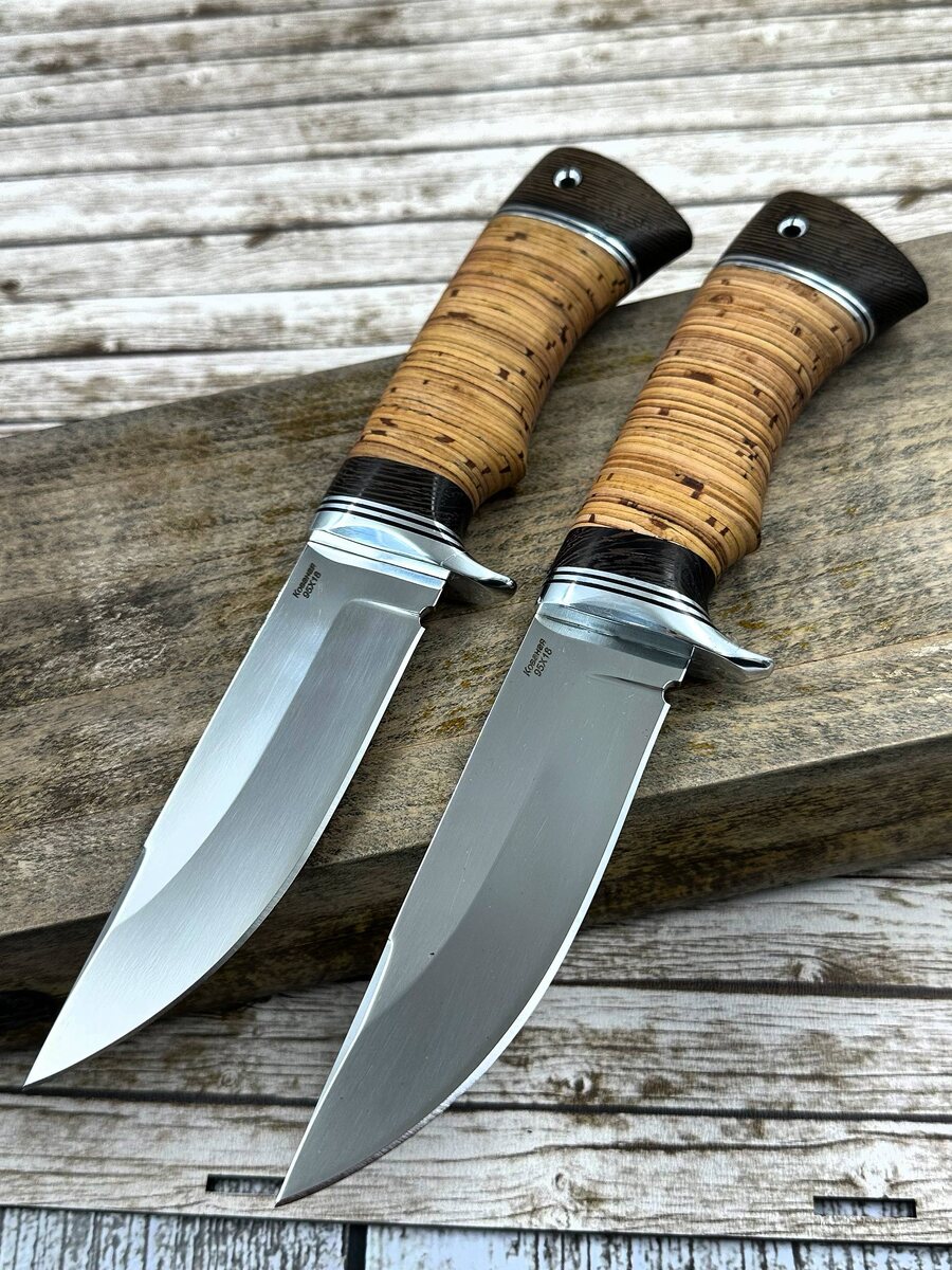 Рукоять из бересты — тёплая, приятная в руке, не скользит даже во влажную погоду.