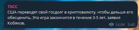 Как много раз говорил депутат ГД и Координатор НОД Евгений Фёдоров, деньги, которые США должны, никому не вернут. Вот и сказочке конец. ✉️@golosrvsn https://t.me/tass_agency/335973