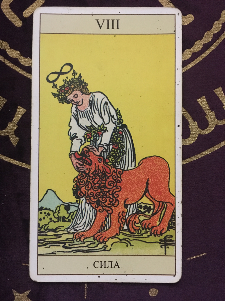 Мы прошли через триумфальную волю Колесницы, которая побеждает внешний мир. Но что сильнее самой мощной брони и самого острого меча? Что способно укротить самого лютого зверя? Встречайте архетип, который побеждает не подавлением, а мягкостью, не страхом, а любовью, — Силу. Укрощение Зверя в Себе На карте мы видим прекрасную, спокойную женщину, которая без усилия, одними руками, смыкает пасть могучего льва. На ее голове — знак бесконечности (лемниската), символ божественной энергии и связи с вечностью. Лев, символ низших, животных инстинктов (гнев, страх, похоть, агрессия), не сопротивляется, а покорно подчиняется. Он не убит, не закован в цепи — он укрощен. Сила — это не физическая мощь (это больше про Императора), а внутренняя сила духа, моральное мужество, стойкость и сострадательный контроль. Это способность направлять грубую, хаотичную энергию наших инстинктов и страстей в конструктивное, творческое русло. Архетип Юнга: Персона (Маска) и Тень С точки зрения психологии Юнга, аркан С