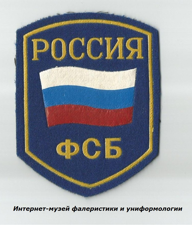 Образованная в 1995 году Федеральная служба безопасности Российской Федерации (ФСБ России) получила военную форму, установленную Указом Президента Российской Федерации от 23.05.1994 года № 1010 для Федеральной службы контрразведки Российской Федерации (ФСК России). В связи с образованием нового ведомства потребовалось введение нарукавных знаков нового образца. Вскоре такие знаки различия появились на кителях военнослужащих органов госбезопасности. Нарукавный знак ФСБ России образца 1995 года представлял собой тканевую нашивку в форме щита василькового цвета (щит пятиугольный, вытянутый книзу, с гнутой верхней частью) с кантом золотистого (желтого) цвета. В центре знака - изображение развевающегося Государственного флага Российской Федерации; надписи золотистого (желтого) цвета: в верхней части - «РОССИЯ», в нижней - «ФСБ». Данные нарукавные знаки изготавливались и с полем черного цвета. Изменение нарукавных знаков ФСБ России произошло в 2005 году. Новые знаки различия представляли соб