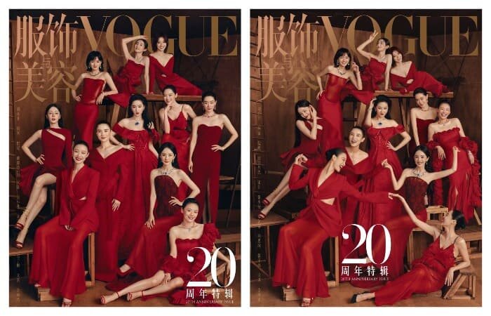 В сентябре 2005 года вышел первый выпуск китайского Vogue. И сейчас этому изданию в Китае исполняется 20 лет. По случаю юбилея журнал выпустил сентябрьскую обложку с 11-ю актрисами.