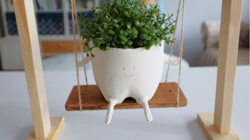 Творю душой и сердцем: делюсь историей о своём увлечении и новой поделке - весёлом кашпо на качелях