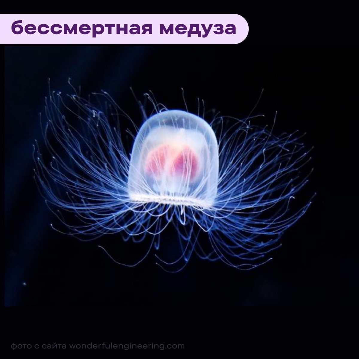Уверены, что вечная жизнь — это сказки, а бессмертным бывает только Кащей или Эдвард Каллен? 🤔 Между тем в морских глубинах обитает прозрачное существо величиной с детский ноготок, которое научилось обнулять свой возраст. Это не миф. Речь о «бессмертной медузе», способной вернуться в детство и начать жизнь заново. В чем секрет бессмертия медузы Turritopsis dohrnii, выясняем в рубрике #МыслиНаночь Она рождается в виде крошечной личинки-планулы, оседает на дно и и дает начало колонии полипов — это «детский сад». Из полипов отпочковываются 🪼 медузы, которые через несколько недель становятся половозрелыми и достигают в диаметре 4 мм. Магия начинается, если взрослой медузе 🤕 плохо: голод, резкое охлаждение, снижение солености, травма, болезнь или старость. Тогда T. dohrnii «перематывает жизнь назад»: медуза трансформируется обратно в полип, пережидает опасные условия и формирует новую колонию. Процесс называется трансдифференциацией. Это когда уже взрослые клетки меняют свою «спе