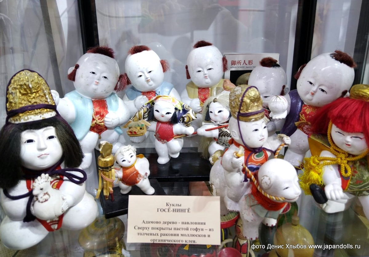 Куклы Госё-нингё всегда привлекают внимание гостей в нашей экспозиции декоративно-прикладного искусства Японии. Куклы госё-нингё - эти куклы появились в Японии в конце эпохи Эдо (первые упоминания датируются XVIII веком). Кукол изготавливали мастера императорского дома. Император вручал кукол в качестве подарка представителям феодальной аристократии - провинциальным князьям - даймё. Куклы изображают маленьких детей с нарочито большой головой, из-за чего тело кажется намного меньше. Мастера делали их из дерева, а затем покрывали белилами гофун (смесь с использованием перламутра из раковин устриц) и шлифовали до блеска. Приглашаем посетить наш Музей Кукол МОАК «Кукольный переулок» в Кремле в Измайлово. Коллекция Музея состоит из нескольких экспозиций – авторских кукол, японских традиционных и авторские кукол и истории кукол и игрушек, русских народных кукол и игрушек, антикварных кукол и реплик, портретных кукол. Расписание экскурсий и мастер-классов: Будние дни – индивидуальные экскурси
