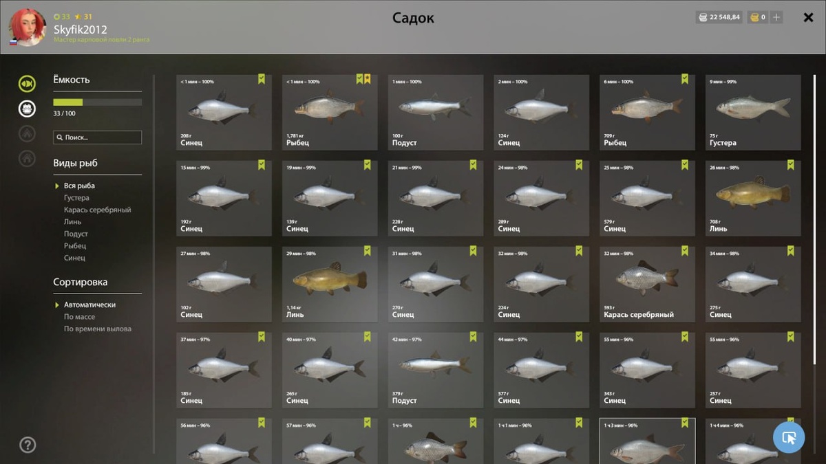 - Рыба: Рыбец(трофей),синец