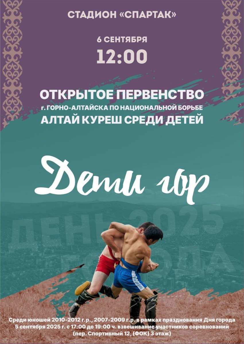 ☄️В День города, 6 сентября, впервые в Республике Алтай состоятся соревнования по национальной борьбе «Алтай куреш» среди детей в личном