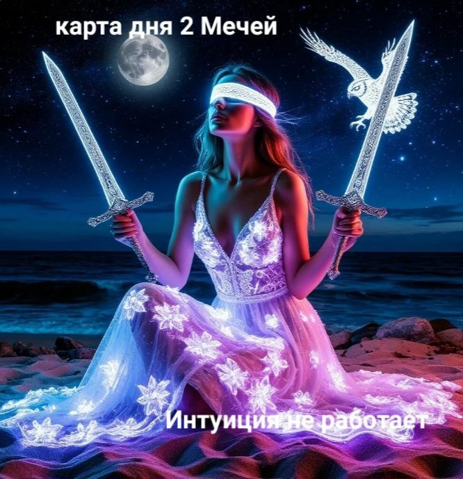 Карта дня 2 мечей Сегодня стоит более тщательно взвесить все за и против, если требуется принять решение. Но лучший вариант, это отложить решение любых вопросов на завтра. Интуиция сегодня не работает. Возможно, какая-то ситуация сегодня подойдёт к концу. Если хочется закрыться от мира, то сегодня можно. Сегодня день, когда нет полноты информации, сложно взвешивать все за и против, можно только слушать и сражаться, но не видно главного, поэтому делать это достаточно проблематично. Наберитесь терпения и слушайте внимательно сегодня, не делайте резких движений.